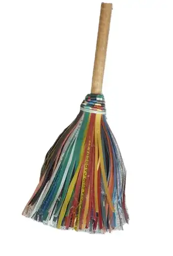 fabricada con tiras de plástico reciclado, es ecológica e ideal para barrer patios,andenes y otros espacios pocos delicados. Convierte residuos diarios en una herramienta de limpieza práctica y sostenible, ayudando a reducir el impacto ambiental.