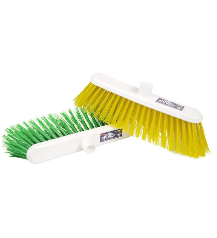 Las fibras PET duras, más impermeables, ofrecen una mayor durabilidad, permitiendo barrer eficazmente polvo, hojas y residuos sin desgaste. Especialmente diseñadas para pisos de concreto y espacios exteriores, garantizan un rendimiento superior y una larga vida útil.