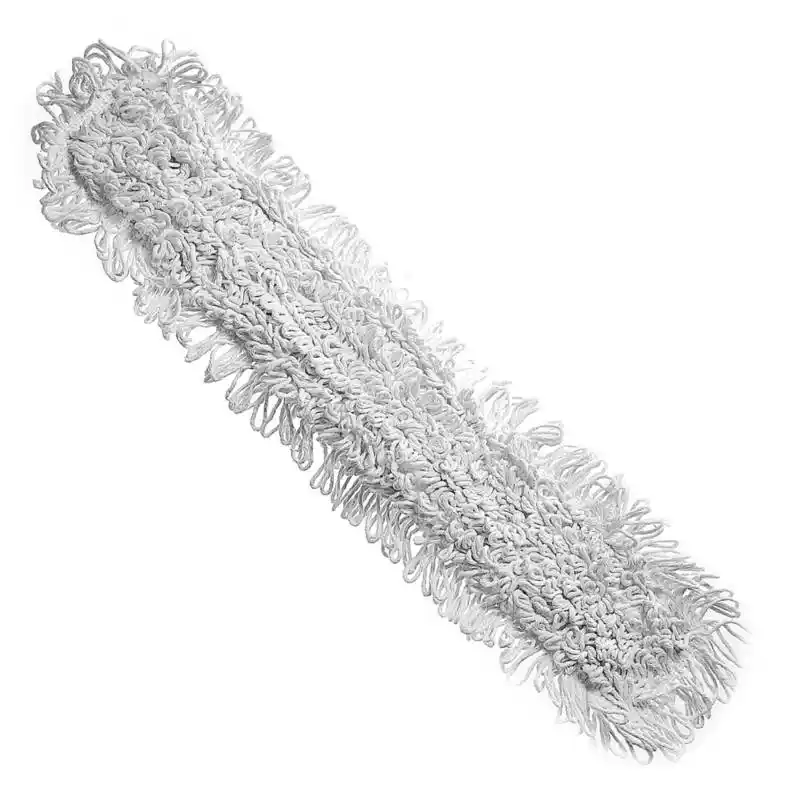 Trapero de algodón blanco: ideal para limpiar superficies variadas. Este trapero de alta calidad se fabrica con tiras resistentes de algodón absorbente que aseguran limpieza eficaz y duradera. Su diseño sin cabo permite combinarlo con el palo de tu preferencia, aportando versatilidad y eficiencia.
