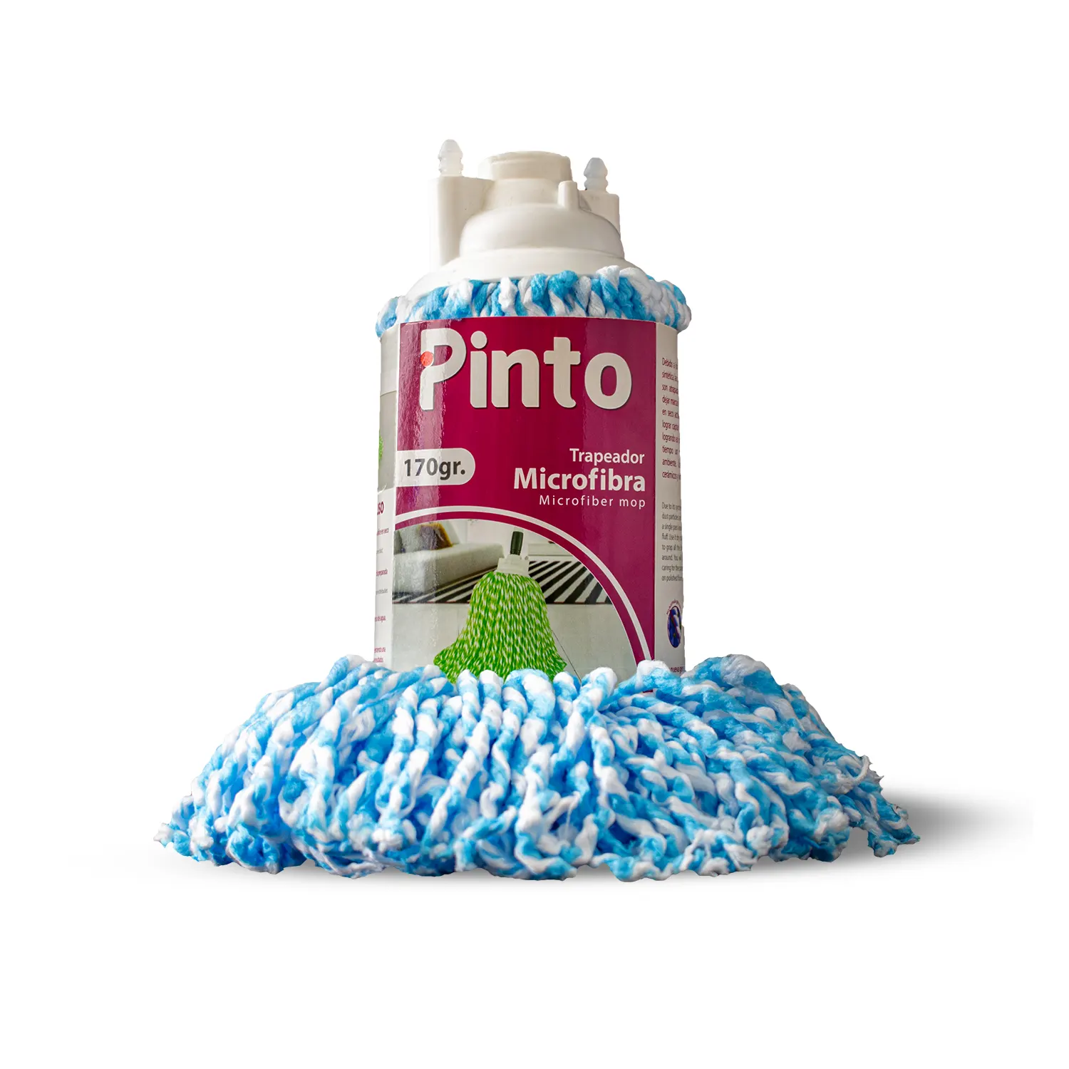 TRAPERO DE MICROFIBRA FULLER: Trapero de microfibra de 170g, disponible en verde, azul, rosado y blanco. Su tejido retiene más polvo y suciedad, brindando limpieza eficaz. Cuenta con cabo metálico que garantiza resistencia y comodidad.